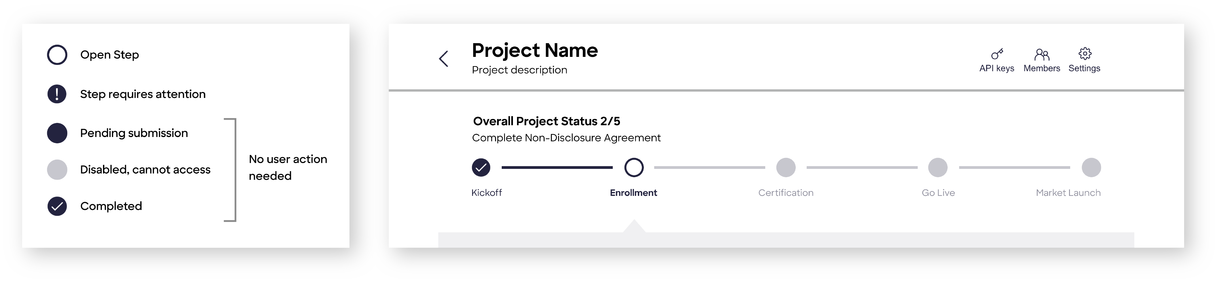 I added an overall navigation tracker at the top. The left picture shows what each step means. To ensure it was accessible, I designed it to not rely on color.