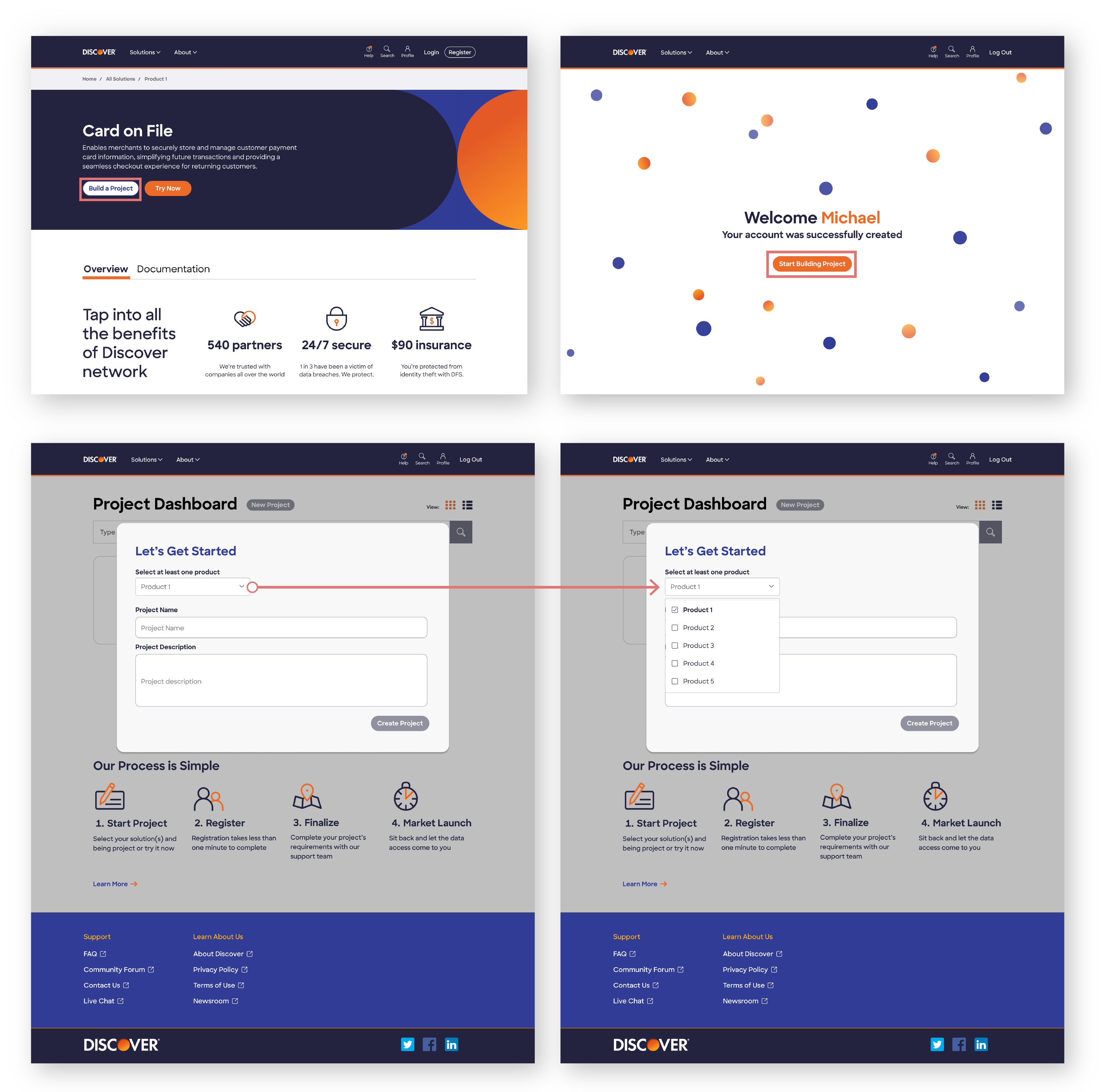 Discover describes it as a "shopping cart" experience. I approached this by utilizing consistent language across the portal with the word "build".