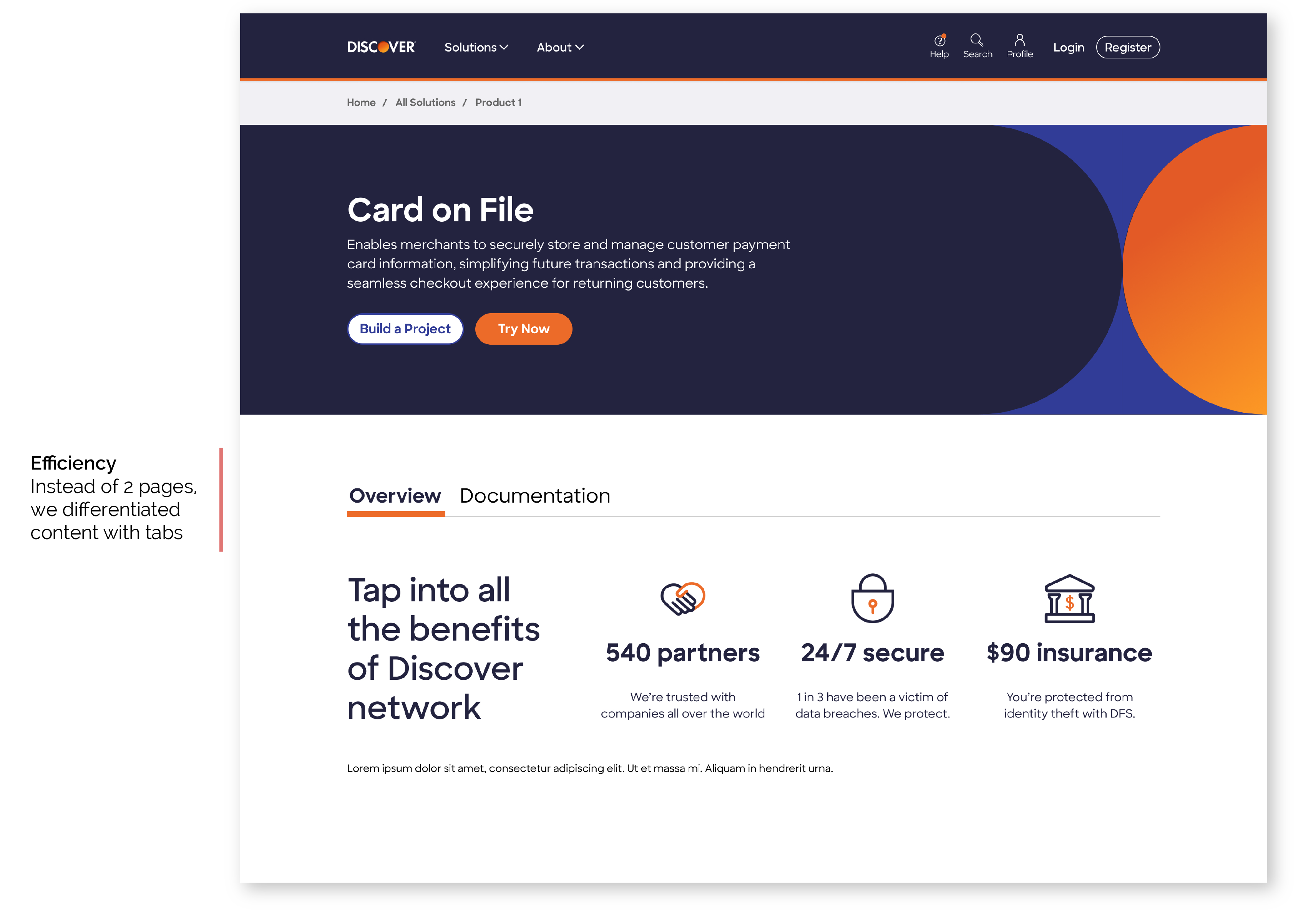 To make our design more efficient and user-friendly, we differentiated the material with tabs, reducing loading time and eliminating the need to build a whole new page.