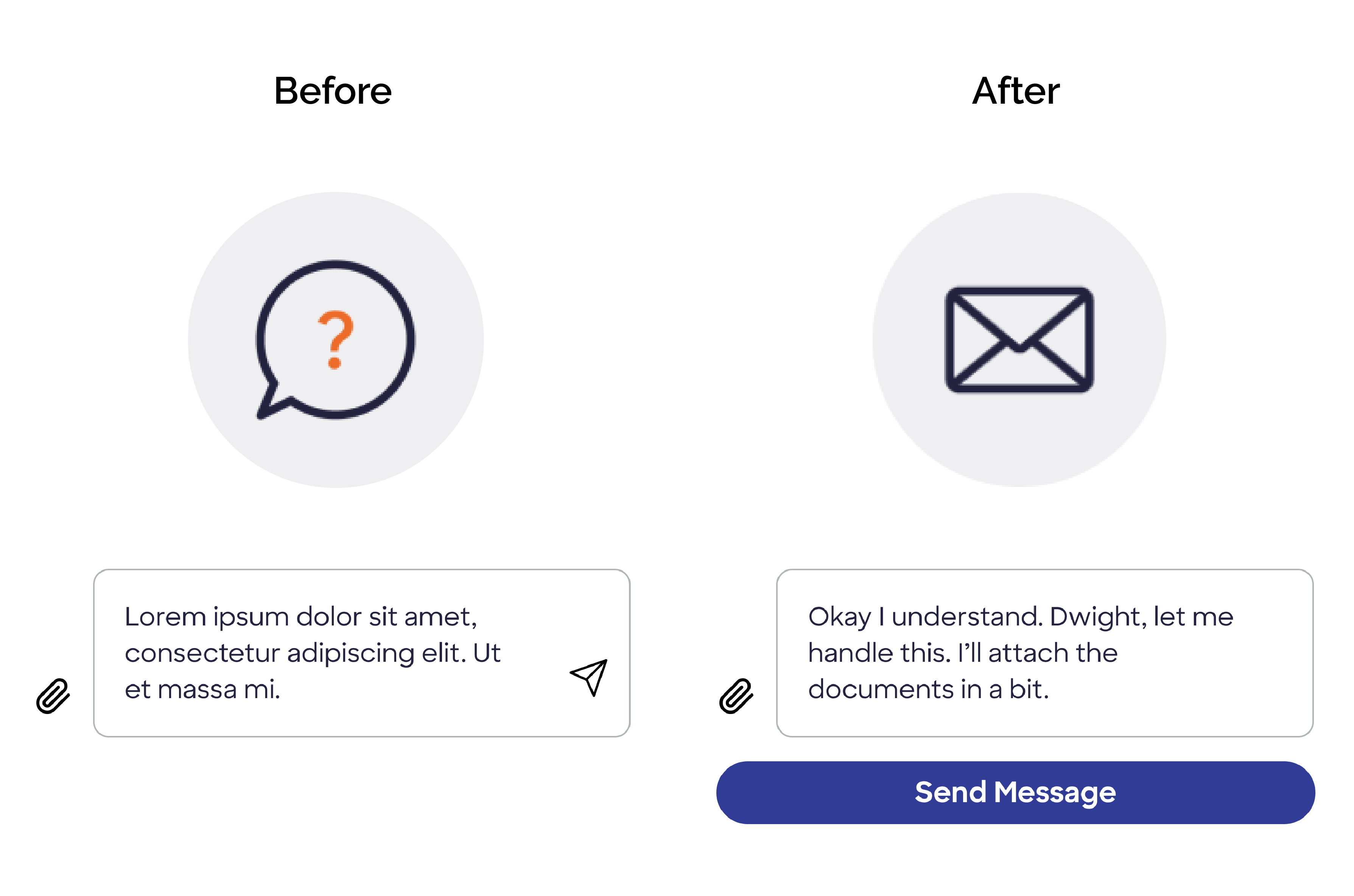 I set up expectations by switching the icon from a chat bubble to a letter mail one and the send arrow to a "send message" button.